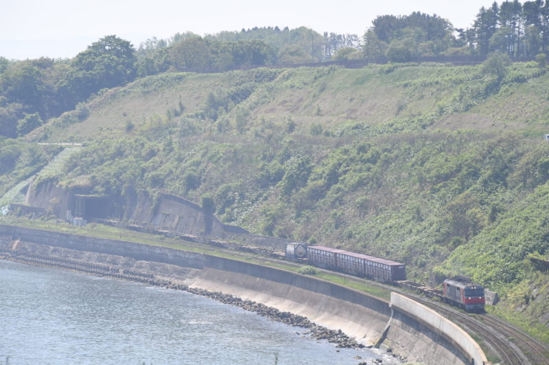 いつも延長の短い中央東線の貨物列車ばかり見ていたので長さを見誤りました…。さすがに本州・北海道連絡路線の貨物はとても長かったです…。